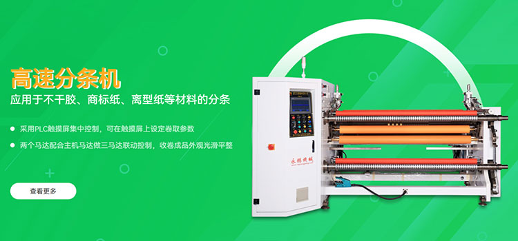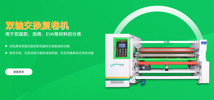 匠心的工艺、环保节能、严格的质检程序,我们交货速度快,通用型号,当天可以发货,定制产品,7天可以发货。 生产的分条机、复卷机、贴合机等机械设备广泛服务于BOPP、PET、PE、美纹纸等行业。
