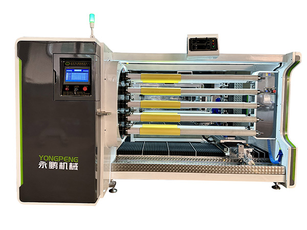 分切方式:采用五片圆刀同时分切,五轴同时分切,另外五轴可备料,节省上下料时间,不停机提高效率。