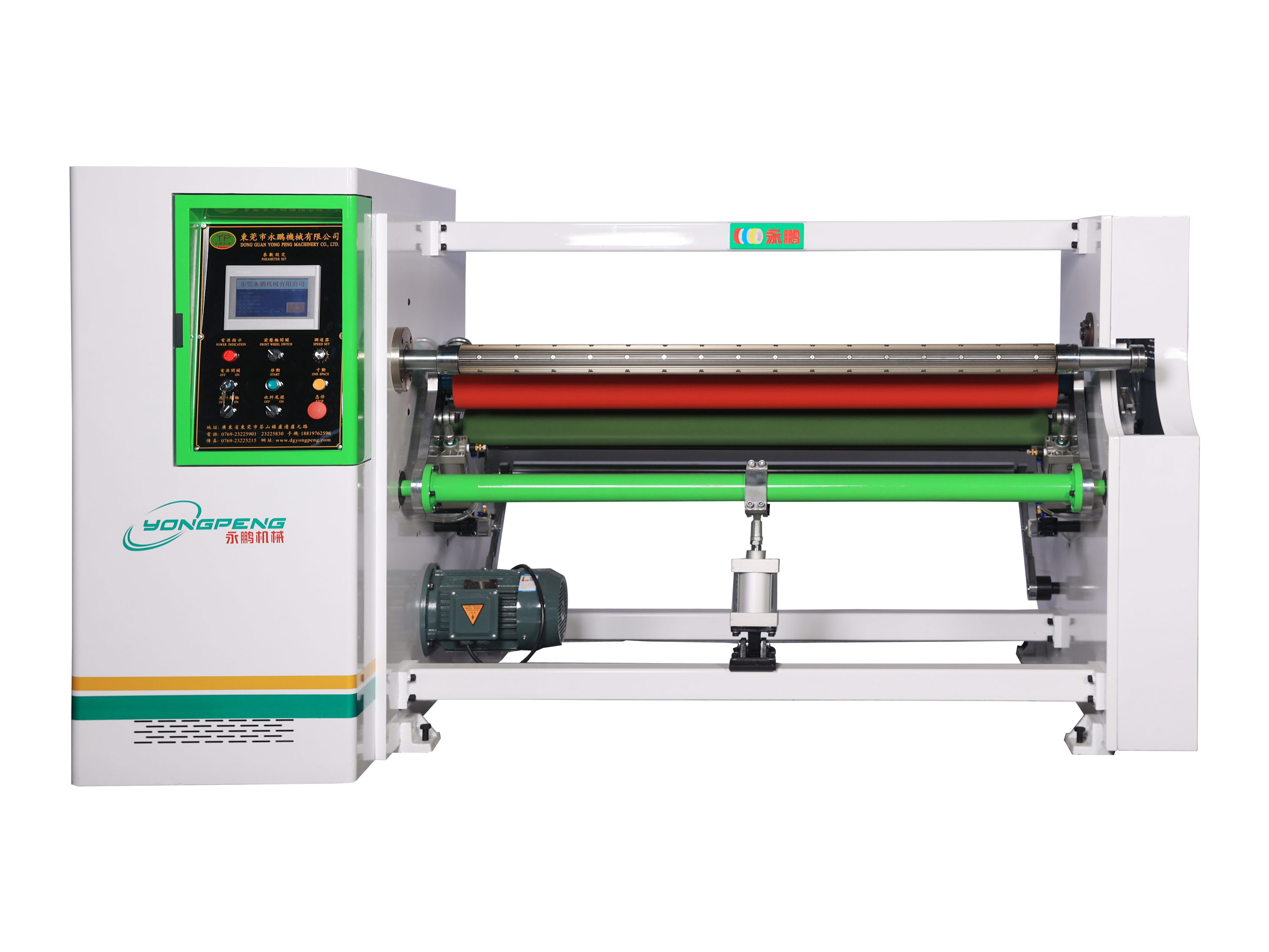 胶带复卷机将传送挡板调整到适当的距离(通过拧紧传送挡板下方的手动按钮)。将打孔好的铜版纸卷装入送纸器,将纸穿过纸轴,用一个橡胶辊压紧,调整分切辊两端,将手转调整到合适的压力(顺时针压力小,反之则大),然后启动电动旋钮,由慢到快调节速度,利用快慢辊之间的速度差,将铜版纸分开。